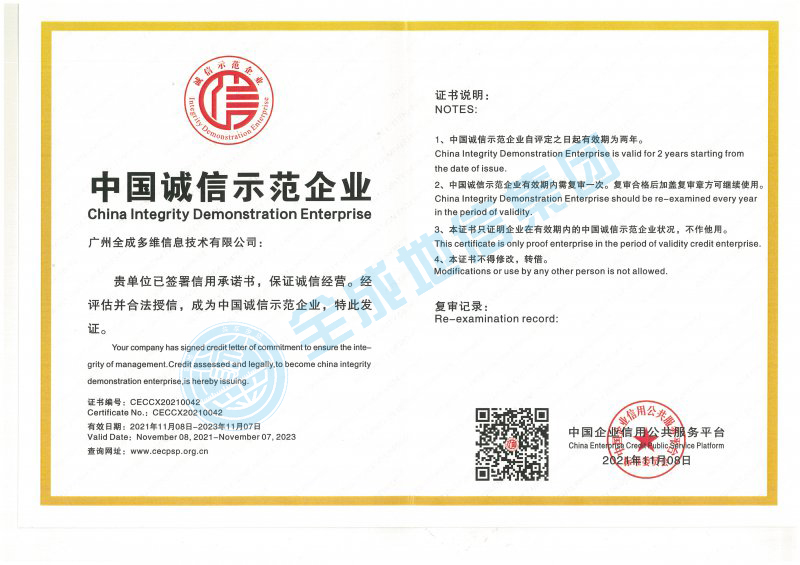 中國(guó)誠(chéng)信示范企業(yè)