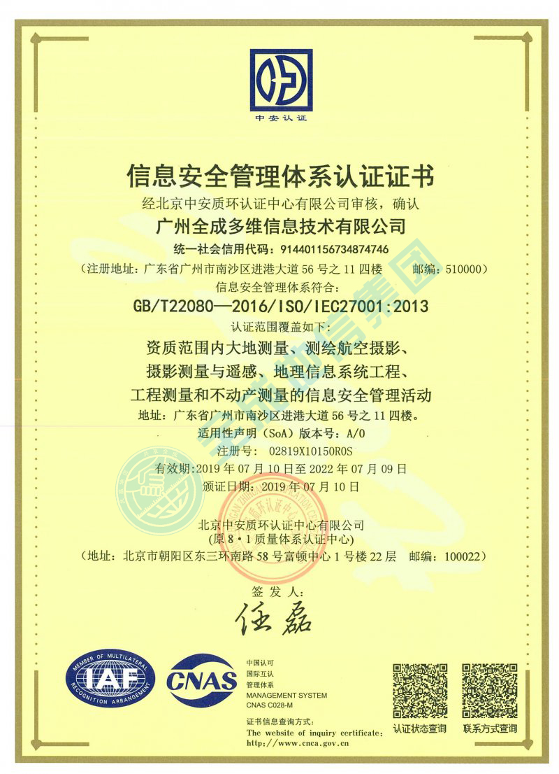 信息安全管理體系認(rèn)證證書