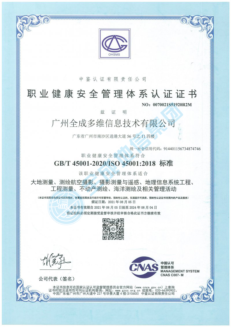 職業(yè)健康安全管理體系認(rèn)證證書